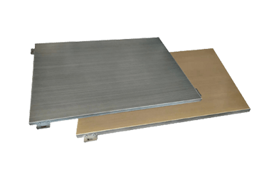 采用表面装饰处理的优质铝合金板、镀铝或镀锌钢板作为装饰面层, 辅以防护背板,再复合真空绝热板。